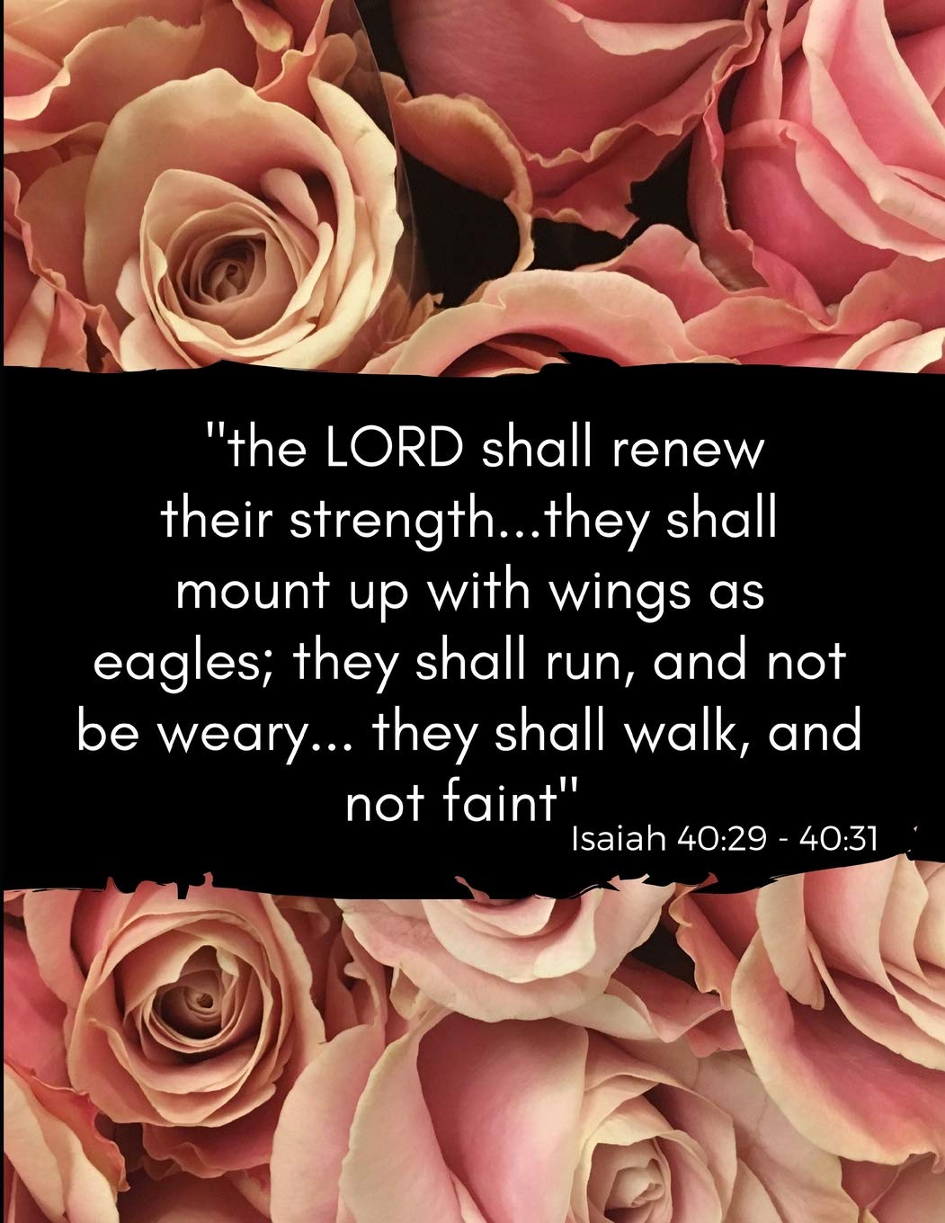 29 He giveth power to the faint. 31 but those who hope in the LORD will renew their strength. Speak tenderly to Jerusalem and cry to her that her warfare is ended that her iniquity is pardoned that she has received from the LORDs hand double for all her sins.